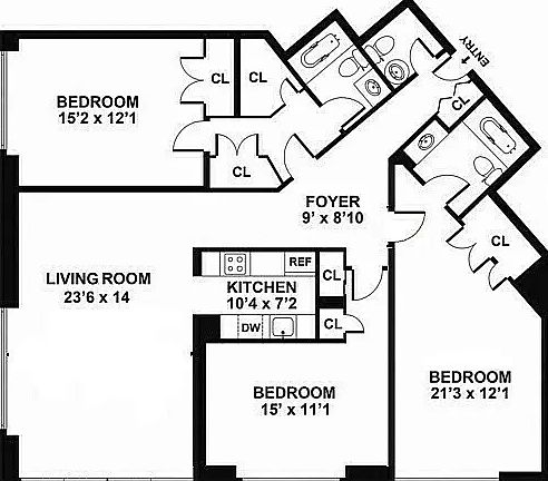8B is a bright and spacious three-bedroom residence in a full-service condo building near United Nations, Grand Central, and Tudor City Park.
