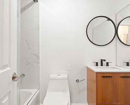 Modern bathroom with sleek finishes.