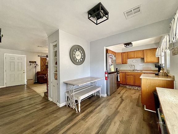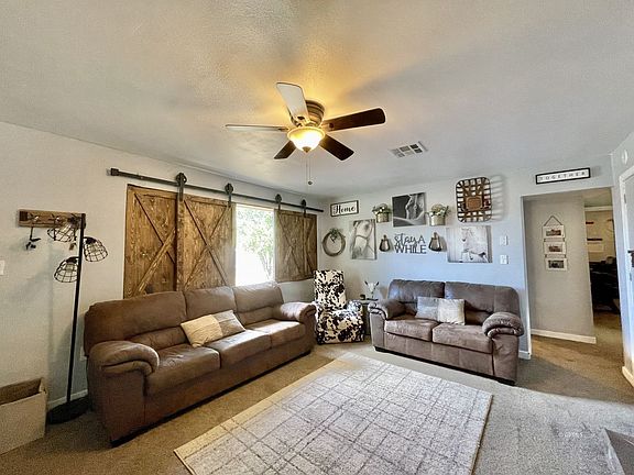 This is a beautiful home inside and out. Well taken care of with upgrades throughout and ready to move-in. Newer roof, ac/heating unit, flooring, dual-pane windows, and paint inside. Outside will be getting painted soon. Stepping in through the front door you are greeted in the family room to a beautiful fireplace and custom made barn door window coverings. This home features 3 bedrooms, 1 bathroom, laundry room, and dining/eat in kitchen. Outside in the fully-fenced backyard there is a covered patio for entertainment and a complete block wall for privacy. Included in the back yard is a separate fenced in area to store your RV/Boat or other toys and has a new 10x12 Tuff shed (with loft inside) to store everything you need or use as a workshop. Does have a large RV gate entrance and access to the alley behind the home. Schedule your appointment today to see this home and make it your own!