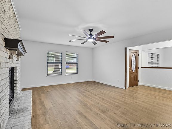 Seller Financing Available!!! YES 5.0% rate, 15 year term. Step inside this completely remodeled home in Muskogee! Step into this beautifully updated 3-bedroom, 2-bath home featuring top-of-the-line finishes and modern style throughout. Recent upgrades include fresh exterior and interior paint, new LVP flooring, stylish baseboards, new blinds, and new front door. Both bathrooms have new vanities, toilets, and fixtures. The stunning kitchen is a showstopper-fully remodeled custom wood cabinetry, granite countertops, center island, all new stainless steel appliance . Large family room with wood bring fireplace, and dining area offers comfort and convenience. Bedrooms and living rooms are complete with remote ceiling fans. Move in ready and designed with care!