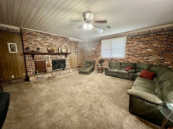 Charming 3 bed, 1 1/2 bath brick home on 1.46 acres! Conveniently located to hospitals, shopping, schools, and dining! Very inviting living area with gorgeous brick walls and wood burning fireplace. A great kitchen with white cabinets, appliances that stay, and breakfast nook! Large laundry room with built in cabinets for more storage! Plenty of extra space for entertaining guests with an additional large room that would be great for game room or additional living room and an outside covered shelter for backyard BBQs! Take a look at this home today!