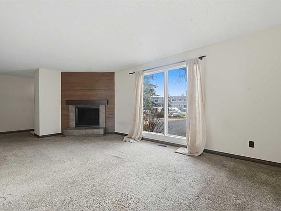 END UNIT | BACKING GREEN SPACE | 5 BEDROOMS | SPACIOUS 1280 SQ FT LAYOUT + FINISHED BASEMENT | VERY DESIRABLE COMPLEX | STEPS TO SCHOOLS, TRANSIT & AMENITIES | AMAZING VALUE FOR FAMILIES, INVESTORS & RENOVATORS | This bright end-unit townhome sits in a sought-after complex and offers an incredibly functional layout designed for families and anyone looking to personalize a home with their own updates. Oversized windows bring in natural light throughout the main level, while an inviting living room creates a warm gathering space anchored by an updated woodburning fireplace that adds both character and comfort. A bayed dining area supports easy flow for family meals and celebrations and the adjoining kitchen features generous cabinet storage, stainless steel appliances and a handy built-in desk for homework or work-from-home needs. A convenient powder room completes the main floor. Upstairs, 3 bedrooms ensure comfortable separation for family living, supported by a 4-piece bathroom with room to refresh and modernize. Even more flexibility awaits in the finished basement where a spacious rec room sets the stage for movie nights, gaming or a dedicated play area. 2 additional bedrooms and a 4-piece bathroom create valuable added living space for teens, guests or extended family. This level is ideal for buyers seeking versatility or investors exploring multi-generational accommodation options. Outdoor living is enhanced by direct access to a large green space, adding extra room for kids to play and for relaxed evening walks. A parking stall directly in front of the home adds everyday practicality. A truly unbeatable location elevates the value of this property, with Pineridge School, Saint Patrick School and Clarence Sansom School all within walking distance, along with transit, Village Square Leisure Centre, restaurants and shops. Quick access to Sunridge Mall and the C-Train strengthens convenience for commuting and errands. This is a fantastic opportunity for families, investors or handy homeowners to secure a spacious end-unit townhome in a well-managed community and update it to match their vision!