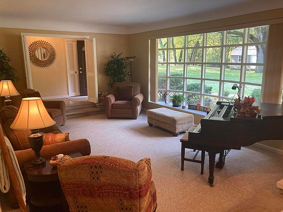 A rare opportunity to own a large ranch style home with over 2574 square feet of living space situated on an 1.19 acre lot in town! Through the front door you'll find the huge living room open to the dining room with gorgeous views of the expansive lot with mature trees. Through from the foyer are the family room with a wood burning fireplace, a great room/sun room large enough for the largest of gatherings or just lounging with views of the backyard with an inground pool. The beautiful eat in kitchen features wood cabinets, appliances, a large pantry and sliding doors to the patio and backyard. It's just steps to the full room size laundry room. Here you'll find a sink with cabinets, a closet, a hidden ironing board, storage room and a half bath and access to the attached garage. At the south end of the house is the large primary bedroom featuring an en suite bathroom and 2 closets, bedrooms 2 and 3 which are generous in size with closets and offer great views of nature which surrounds this house on all sides. The backyard oasis features an in ground pool, pool house with 2 changing rooms plus room for storage of all the pool equipment and toys. Speaking of toys, a 2 car attached garage, a detached 2 car garage both accessed by a brick paver driveway and a storage shed offers room for multiple cars or whatever you need to store. The expansive lot offers areas for gardening, a fire pit area to enjoy the cooler evenings outside or just sitting and relaxing and enjoying nature in your private, hidden oasis. This home has been lovingly maintained and updated by it's current owners. Request your private showing to view this one of a kind property before it's gone. You won't be disappointed.