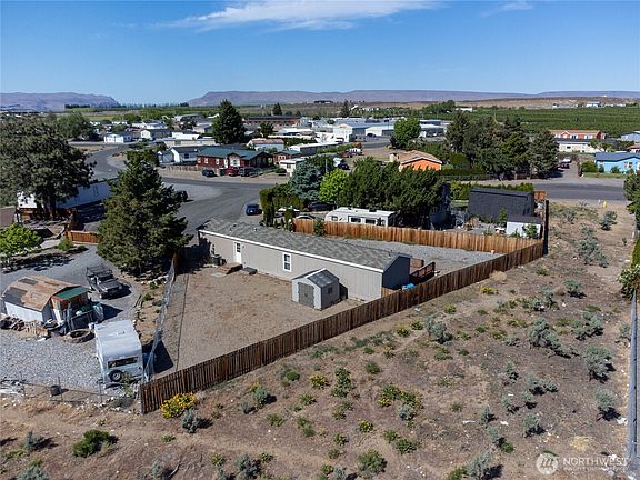 Welcome to this charming 3 bed, 2 bath home in the desirable Desert Aire Community! Nestled on a quiet cul-de-sac, this 1080 sq ft gem sits on a HUGE low-maintenance gravel lot. Enjoy the fully fenced backyard, large deck—perfect for entertaining—and a convenient storage shed. The open floor plan boasts a spacious kitchen with an island and eat-in space, plus all appliances included. Relax in the primary suite featuring a walk-in closet and private bathroom. Enjoy the amenities including Golf course, airfield, community pool and park, tennis courts, gym, walking trails & boat launch! A must-see!
