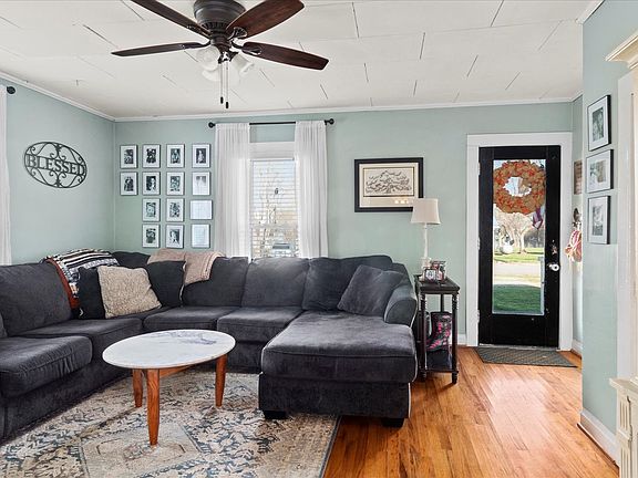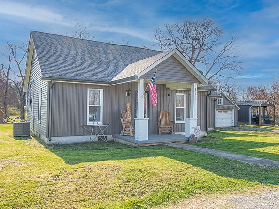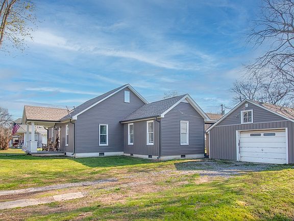 Very cute well maintained farm house with 2BD 1BA! Original hardwood floors throughout, kitchen features butcherblock countertops with farmhouse sink and tile backsplash, custom cabinets, full bath has decorative tile flooring with tub tile surround, large primary bedroom, dining area for family, two flex rooms that can be used for bedroom/office, large deck on back of house, covered front porch, spacious yard, detached garage, new roof, new vinyl board & batten siding, and much much more! Call for more details!