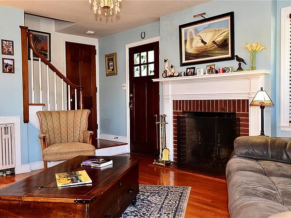 This delightful home is everything you are looking for! Gleaming hardwood floors, handsome fireplace, newly installed ( less than 5 years old, maintained seasonly ) central air, gas heat, covered side porch and a beautiful enchanted garden - fully fenced in for privacy. There are 2 bedrooms and a possible third/nursery/office on the second floor with an eye catching original tile bathroom and plenty of closet space. This charming home sits on a large corner lot and has been meticulously maintained. You will fall in love with this one-it's a real gem!