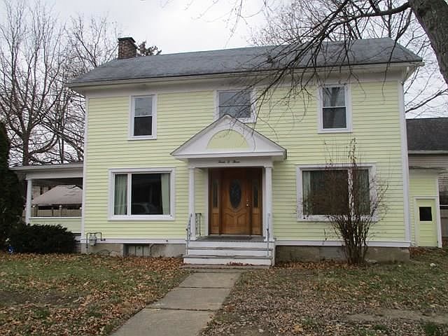 This stately 3 bedroom, 1 1/2 bath two story Colonial features a foyer entry, large living room with fireplace, covered side porch, formal dining room, kitchen with appliances included and separate pantry, first floor laundry includes a half bath. Upstairs has 3 good size bedrooms and an updated full bath with two entrances. Full basement, detached one car garage, private side patio area, large corner lot, recently painted exterior. A nice house that is very reasonably priced, well below assessed value. Don't miss this one.