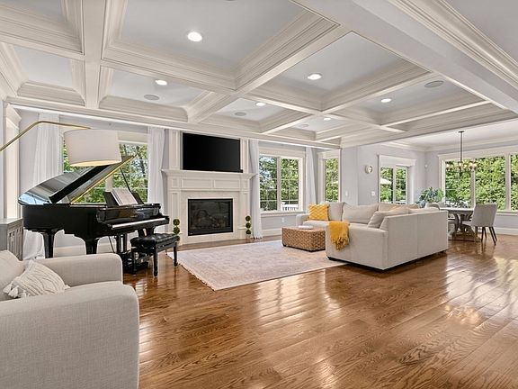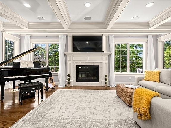 Built in 2019 on over 18,000 SF, this home has the perfect mix of elegance, luxury and functionality. Tucked away from the street & surrounded by beautiful lush privacy trees. Formal entrance brings you to a bright & open floor plan, complemented by wainscoting, coffered ceilings & cove lighting. Immaculate Chef’s kitchen w/Sub-Zero/Wolf appliances & direct access to newly expanded outdoor deck & sprawling yard. Mudroom w/separate entrance has access to powder room & 2 car garage w/electric car charger. Spacious multi-windowed office & large ensuite bedroom complete the main level. 2nd floor w/windowed laundry room features 5 spacious ensuite bedrooms, including spectacular primary bedroom w/private grand hallway, high ceilings, 2 walk-in closets & spa-like bathroom. Huge bright lower level, w/10’ ceilings, includes walk-out family room w/full sized sliding doors, multi-use bonus room, wet bar and ensuite bedroom. Wired for surround sound & convenient to top rated schools & Boston