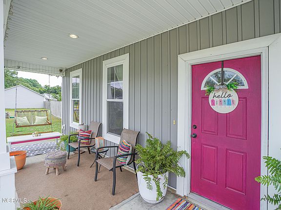 This beautiful two story home is situated on just over half an acre! An adorable front porch gives way to an open concept living space filled with natural light, and opens up to a large living room and stunning kitchen complete with an island and granite countertops. Upgrades throughout include crown molding, LVP flooring, recessed lighting, and a six foot privacy fence that fully encompasses the huge backyard! All three bedrooms are located upstairs. The master suite leaves nothing to be desired and is highlighted by trey ceilings, a large en suite bath with a double vanity, and a walk in closet. Wonderful waterfront neighborhood with access to neighborhood boat ramp. Close proximity to all three military bases, sitting just a few minutes from the back gate of Camp Lejeune!
