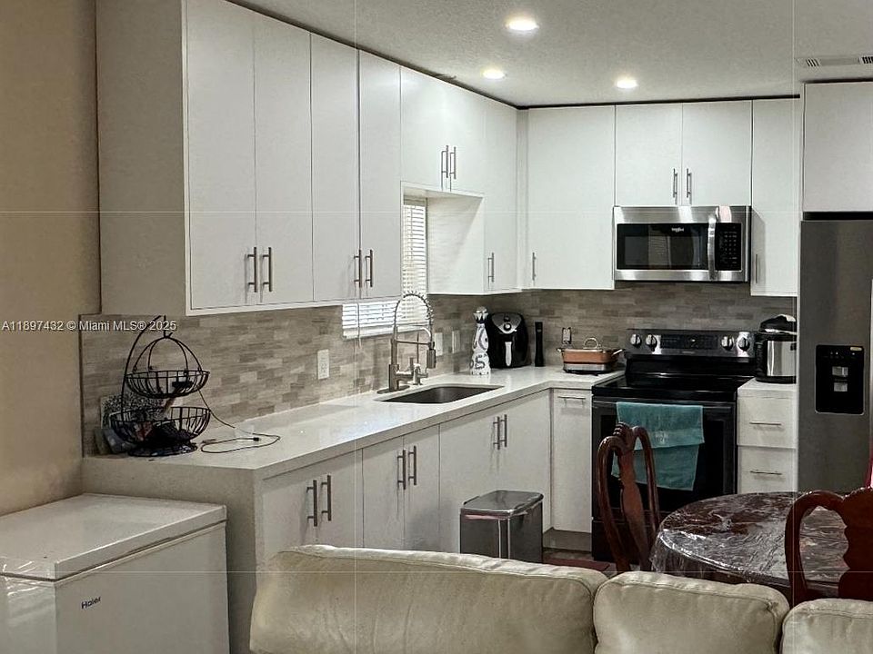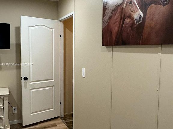 Charming 3-bedroom 2-bath manufactured home featuring an Italian kitchen, luxury vinyl floors, and custom bathrooms. Enjoy 2.5 acres, a steel-frame garage, and a permitted utility building, three 12x12 stables with a tack room, a golf cart, and a round pen. The property is fully fenced with a 416 sqft open porch, perfect for relaxing at sunset in a great neighborhood. Extra items that come with the property: washer/dryer, stove, microwave, dining table, TV in 1 room, grass-cutting machine, and 2 refrigerators