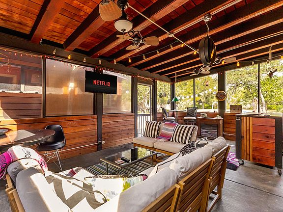 Blanco River Access, Walk to town & STR allowed! Whether you are looking for a primary residence, 2nd home or short-term rental, this artistic, charming, and unique downtown Wimberley gem is just a short walk to a private Blanco River Park and the lively Wimberley Square. You’ll enjoy easy access to restaurants, coffee shops, wine bars, music venues, and boutique shopping. This spacious 2-bedroom, 2-bath home offers 2,348 square feet; the second living area could easily be converted into a third bedroom. The modern entrance and fencing create a private courtyard with by a beautiful and relaxing water feature. The large back yard provides ample space for outdoor games, grilling & entertaining. A private hot tub area off the primary suite and a large screened in patio, enhances the home’s retreat-like feel. Situated on an oversized lot totaling .757 acres. The back yard is fully fenced; property offers coveted acreage so close to town, room to expand and even has a RV hookup for added flexibility. With a Conditional Use Permit in place, this property is currently operated as a short-term rental and second home, making it an excellent investment opportunity or personal Hill Country getaway. Showings are available by appointment only—please contact the listing agent to schedule between guest bookings.