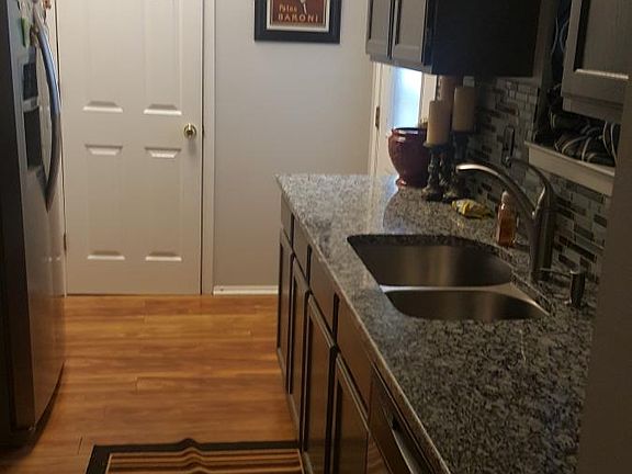 Great location just minutes from the airport and plenty of shopping close. 2 bedroom 2 bathroom. All granite countertops, stainless appliances, laminate floors with tile in the bathrooms. Wood burning fireplace. Laundry room off of kitchen. Small complex with pool very close just a few steps. 2 great outdoor living spaces. A back concrete gated patio and a front part concrete and part deck patio also gated. Koi pond with fountain in front patio area very easy to maintain. All trash services and lawncare included. 2 designated parking spots with plenty of guest parking.. Private owner no agency.