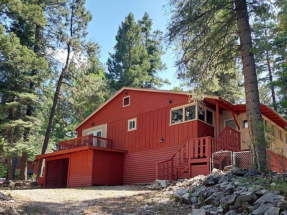 This cozy, single-level cabin on a paved road in the Village of Cloudcroft features an extra lot to build an additional cabin. This 4 bedroom, 1.75 bath home is perfectly located just minutes from town, restaurants, Zenith Park, and scenic hiking trails. Recent updates (2018) include: laminated flooring throughout with tiled bathrooms; completely renovated kitchen with granite countertops, large kitchen island, & stainless-steel appliances; the full bath was updated with a new tub & tile surround. All bedrooms have ceiling fans & the home has updated lighting throughout. Open concept living area with a large, double-sided, fireplace. The primary bedroom has a private balcony where you can enjoy your morning beverage while taking in the beautiful sunrise. The large laundry room provides some additional space for storage, art room, sewing room, etc. This home also includes a mudroom, a fenced yard, a dog run, additional storage areas & comes partially furnished. A must see!