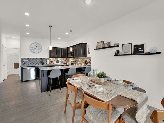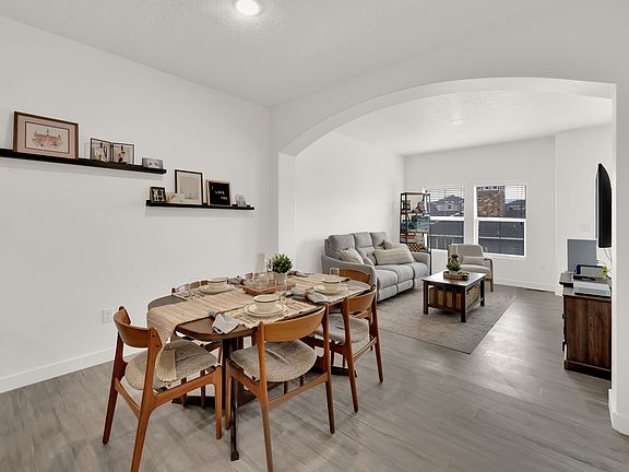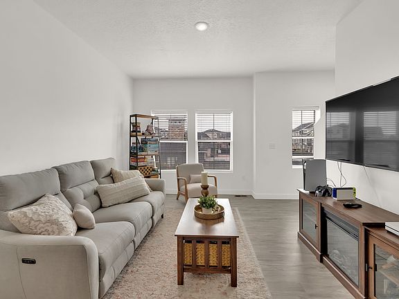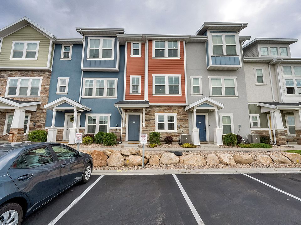 Discover this meticulously maintained 3-bedroom, 3-bath townhome in the vibrant Edgewater in Vineyard! Built in 2017, this 1,844 sq ft A-frame-style home boasts fresh carpet and bright, versatile living spaces across three levels. The open-concept second floor features a sleek modern kitchen, spacious dining area, and a large family room, perfect for entertaining or unwinding. Upstairs, find two generously sized bedrooms, including a primary suite and a secondary ensuite with a private bathroom and walk-in closet. A third bedroom and additional bathroom on the second level offer extra flexibility. Enjoy premium features like full landscaping, central air, granite countertops, a 1-car garage, and an additional parking space (with an optional third space available). The HOA, at $275/month, provides access to a clubhouse, gym, pool, tennis courts, playground, on-site management, and more. Nestled in the top-rated Alpine School District, this home is steps from parks, shopping, dining, Top Golf, Mega Plex Theaters, and easy freeway access. Marvel at breathtaking mountain views from this prime location, adding serenity to your daily life. Move-in ready and located in a thriving community, this townhome is your perfect opportunity to own in Vineyard! Square footage figures are provided as courtesy estimates only and were obtained from county records. Buyer is advised to obtain an independent measurement.