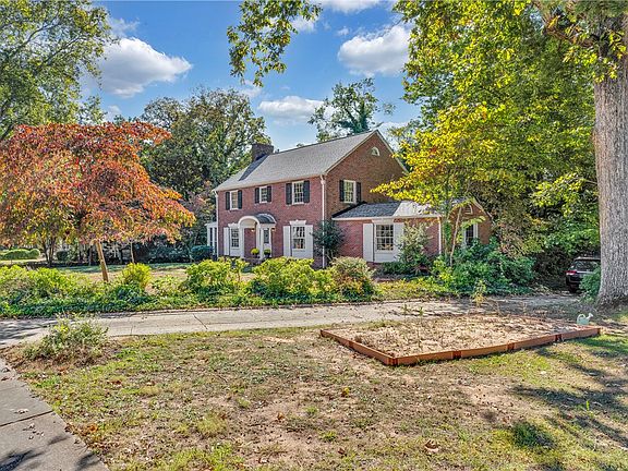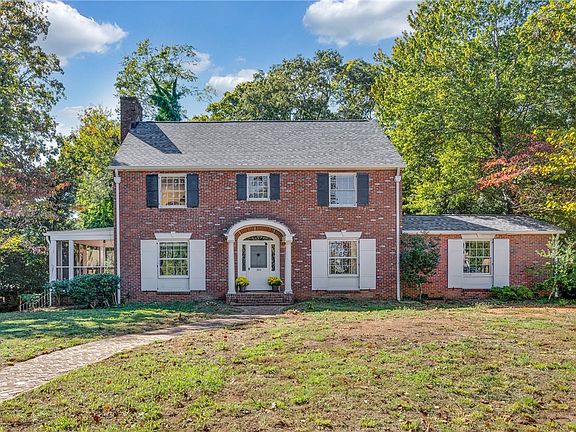 Step into classic elegance with this brick Georgian Colonial nestled in the highly sought-after historic Northside Neighborhood of Easley. This stately residence offers a rare opportunity to restore and personalize a home rich in character and architectural charm. Original hardwood floors flow throughout the main living areas, with the first level already sanded providing a blank canvas for the new owner to stain to their taste. The home showcases enduring craftsmanship with wooden cornices over beveled glass windows, a grand woodburning/gas log fireplace, and arched entries that speak to its historic charm. This 3200 sf beauty boasts five bedrooms, with owners' suites on both the first and second floors (one with an exterior entrance), three tiled bathrooms and a cabinet-rich kitchen. The formal living and dining rooms offer plenty of space for entertainment and family gatherings with an overflow option on to the generously sized screened-in side porch. The foyer has a unique low riser staircase, making it a breeze to navigate. There is also a flex space that can be used as an office, playroom, spare bedroom - the options are endless! Outside, the stately front porch is