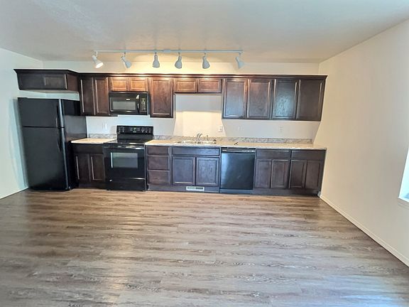 Luxury vinyl plank flooring throughout, providing both elegance and durability. The expansive living and dining areas flow seamlessly into the kitchen, complete with ample cabinetry plenty of room for storage and meal prep.