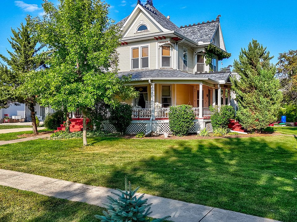 Walk into your very own move-in ready Victorian 3-bedroom 2-bathroom home with a full wrap-around porch! This is one you don't want to miss! Many original features including stained-glass windows, original woodwork and crown moulding, built-in cabinets, and original hardwood flooring. This gem features a 3-car garage, landscaping with a beautiful pond, a hangout shed, and many updates including the roof in 2024, downstairs furnace in 2022, new appliances in 2022 & 2024, new living room carpet in 2022, plus so much more! The master bedroom and bath on the 2nd floor showcase a balcony with a winding staircase updated in 2016. Very motivated seller! Come see all this home has to offer TODAY!