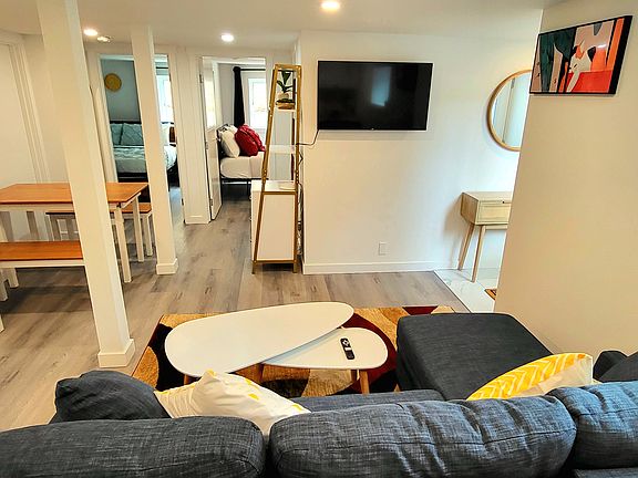 300 Mbps internet is perfect for remote work. 1 free parking space available on the back side of the home near basement unit stairs. Also available are toiletries for shorter stays, smart TV, washer/dryer, towels, linens, basic utensils for kitchen. If you need anything else, feel free to message. I will see if we can work it out.