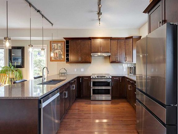 Ask us how you can get 2 months paid condo fees!!! Welcome to 303 Valley Ridge Manor NW—where nature, lifestyle, and luxury meet. Nestled in a quiet, upscale complex backing the Valley Ridge Golf Course, this beautifully maintained three-storey end-unit townhome offers over 1,800 sq ft of thoughtfully designed living space and unbeatable walkability to green space, pathways, and the Bow River. Whether you’re an avid golfer or a nature lover, this location gives you direct access to both—step out your door and onto the course or explore scenic trails that lead all the way to Bowness Park. Inside, you'll find two spacious bedrooms, each with its own ensuite and walk-in closet, plus a convenient upper-floor laundry room. The main living level showcases hardwood floors, extra windows for added natural light, high ceilings, and a welcoming open floorplan. The chef-inspired kitchen features granite countertops, an induction range, and a furniture-style pantry, with a flexible nook perfect for a home office or breakfast table. The cozy family room with a gas fireplace opens to a sunny balcony—ideal for al fresco dining or relaxing after a long day. With two outdoor spaces, you can choose to bask in the sun, or opt for a bit more shade. Here you have choice! A lower-level flex room adds even more functional space, perfect for a home gym or media room. Additional highlights include a double attached garage, upgraded lighting, Hunter Douglas blinds, a Nest thermostat, and low-maintenance landscaping. This turnkey townhome is the perfect blend of peaceful living and urban convenience—steps to the golf course and moments to the city. Notable upgrades include: Newer fridge, stove, dishwasher, hood fan, hot water tank, and ceiling fans! For more information, floor plans and phots, click the links below!