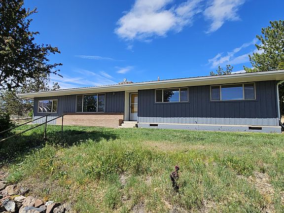 Come see this Mid Century Modern home in the country overlooking the city of Madras. This rare gem has been tastefully updated with out changing the feel of the mid century modern home that is so desired today ! Original hardwood floors as you enter the home, with stunning original brick surrounding an updated gas insert fireplace. The open floor plan also offers both a living and an oversized family room and office space area which overlooks the town. The sunrise views of the valley, city, and natural terrain brings the perfect spot for morning coffee with a peaceful setting while sitting on just over one acre. This home offers 3 bedrooms and 2 bathroom, the primary suite bathroom with a stunning modern update ! Outside there is an RV garage with storage and a perfect work spot area. The desirable location is just above town close to all desired needs in town.