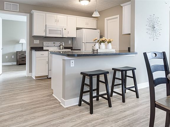 Apartment residence #303 offers comfortable and convenient first-floor living in a charming 1-bedroom, 1-bathroom layout. Highlights include a spacious great room with a cozy fireplace, a modern kitchen complete with a breakfast bar and pantry, in-unit washer and dryer, and both a private covered front entrance and your very own patio perfect for relaxing outdoors.