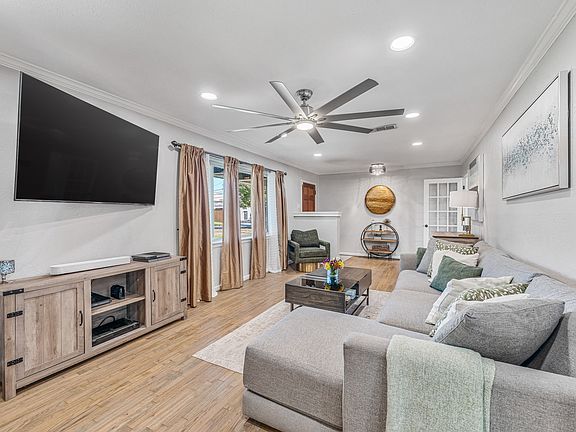 A rare, fully reimagined modern residence in Richardson Heights — rebuilt down to the studs with designer-level finishes and impeccable attention to detail. This home blends clean modern design with warm natural light, featuring an open-concept kitchen with custom cabinetry, quartz counters, gas range, wine fridge, and elegant under-cabinet lighting. Both bathrooms feel like a boutique spa with frameless glass showers and curated tilework and fixtures. Major infrastructure updates include all-new PVC plumbing to the street, a 2025 roof, all-new electrical with an EV-ready panel, additional insulation, and added outlets throughout. Thoughtful interior improvements include raised ceiling heights, engineered hardwoods, custom closet shelving, new LED lighting and ceiling fans, and an extended outdoor living area with a custom gazebo. Located in Richardson ISD within a walkable, tree-lined neighborhood close to parks, retail, and dining. Ask agent for full list of high-end upgrades.