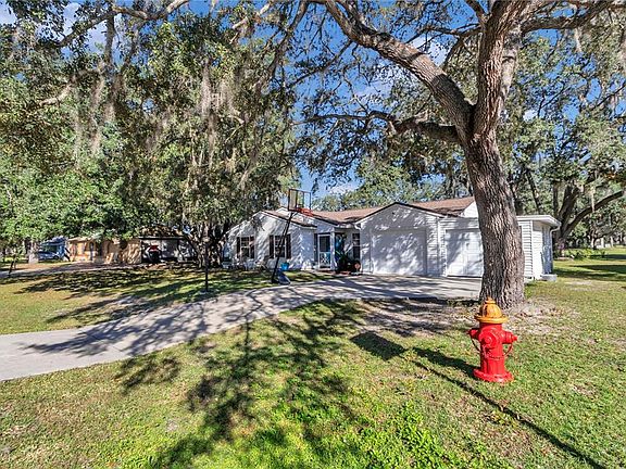 Lovely 3 bedroom 2 bath home with a 1 car garage on a .38 acre lot. To the right of the garage there is an 11 x 20 attached storage room that could possibly fit a small car. New Roof in 2019. Open floor plan. Spacious living room and a generously sized dining area. A separate Florida room overlooks the large rear yard. New wood vinyl plank floors throughout, except for the baths. The beautiful kitchen was remodeled in 2020, the countertops are granite and there is room for a small table and chairs. The HVAC was replaced in 2013. The $145/year HOA fee includes weekly trash and yard trash pick up. As an owner in this community, you have access to a private park and 2 lakes. The stocked lake allows for fishing (catch and release). This home is located just minutes from Walmart, Publix, Aldi, Winn-Dixie, Walgreens, Dollar stores, eateries, post office, parks, churches, etc. Easy access to major roads. For a low fee you can also purchase a membership to the Silver Springs Shores Community Center, which includes basketball courts, pickleball courts, a pool, and tennis courts. Activities at the community center and youth center include karaoke, water aerobics and game nights. Conveniently located near schools and is only a short walk to Lake Weir High School. The seller says there is a bike trail that runs along the side of Oak Rd that goes on for miles.