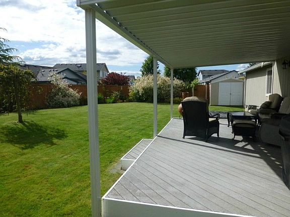 Mt Rainier view AND a better-than-new rambler! One of Kind and picture-perfect, w/charming front porch & French doors to 25’x20’ covered deck. Oversized lot. Painted in/out in 2012. Rare open-concept floorplan w/vaulted ceilings, custom archways, millwork, NO carpets! Beautiful hdwd floor, bath w/ skylight/tile floor, central AC, stunning marble-surround gas fireplace. Lovely light oak cabinets. Manicured landscaping, w/ sprinkler, fruit trees. Walk to schools, parks & ball fields. Must see!!!