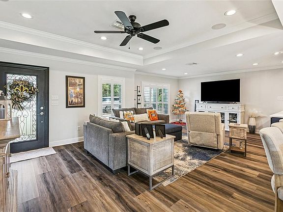 Additional improvements include a natural gas generator hookup, video surveillance system, landscape lighting with irrigation, and soffit electrical outlets for holiday decorating. HVAC and ductwork approx. 7 years old. Located in Zone X flood. A beautifully updated home inside and out.
