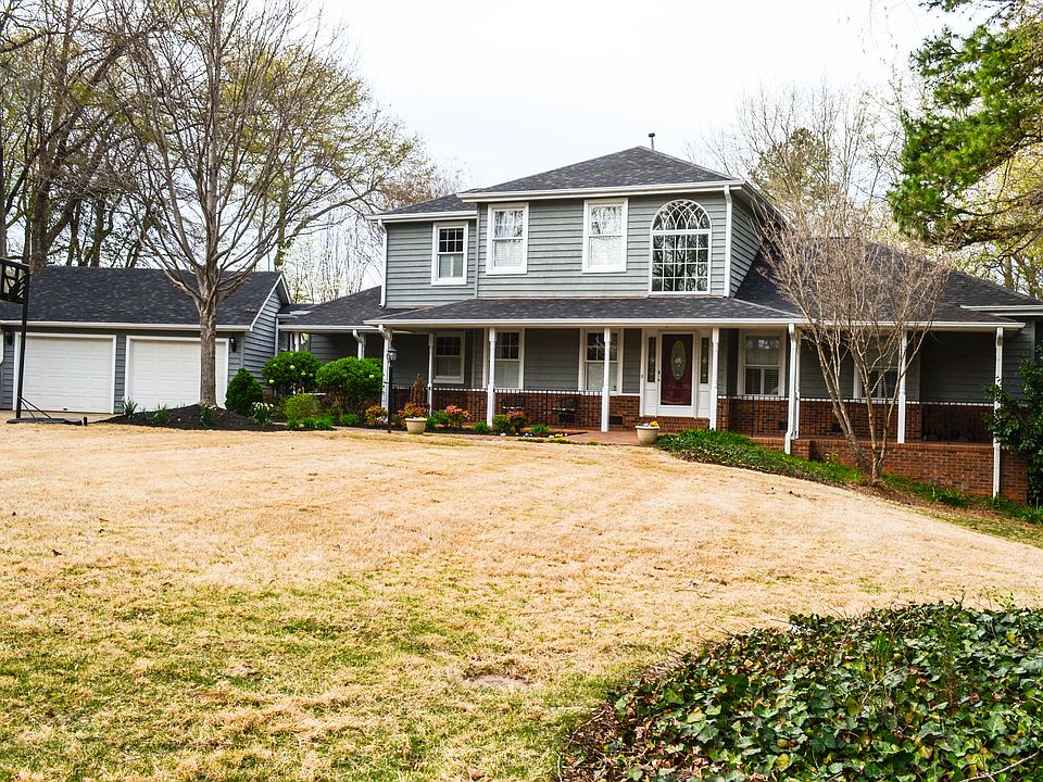 Beautiful fully customized home with charm, warmth, and personality. This cedar siding and brick home is called a California Ranch. It boasts a large two-story foyer, living room (with a gas log fireplace) that could be used as a library, music room, sitting room, or home office. Cathedral ceiling family room (with a gas log fireplace) is open to the kitchen, breakfast room, and sun room. Two master bedrooms...upstairs or down...each with very large master baths with jacuzzi tub, separate walk in shower, two sinks, and expansive storage. Large laundry room/mud room on main with room for 2nd refrigerator or freezer, sink and plenty of storage. Powder room also on main. Additional 14'x14' bedroom on main. All bedrooms have large walk-in closets. Large multi-level deck, and beautiful courtyard style patio in a private, fenced in back yard. Many trees and very private lot in a quiet neighborhood.