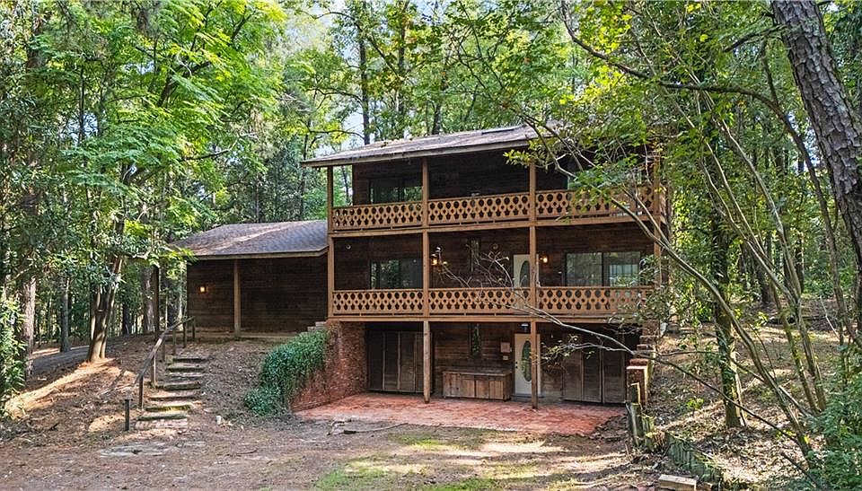Beautiful setting in the heart of Pineville! 3.81 acres nestled off of Edgewood Drive. This uniquely built home has ton of space with 4 Bedrooms, 2.5 Bathrooms, 2 Living areas, large pantry, and a grand loft area that can be used as a 5th Bedroom. The home is 3 stories overlooking a beautiful private pond with an awesome porch/balcony on the middle floor. It features sliding glass doors that open to the beautiful view of the pond on each floor. There are only 4-5 homes down this street providing a private wooded wonderland in the heart of town. Homes with this much land in town don't become available very often. Schedule your showing today!!