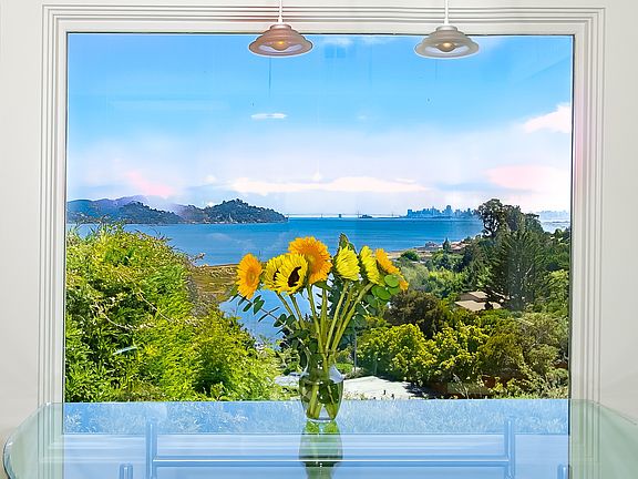 MAGICAL SPOT! Sweeping views of San Francisco Bay and skyline from almost every room in the house. This private location offers indoor/outdoor living at its best. You enter the home on the main level that features an open floor plan making it a casual and relaxing home for living and entertaining. The main level includes the kitchen with a Miele stove-top that has two gas burners and four induction burners, stainless steel appliances, and stone counter tops, a walk-in pantry that flows into a breakfast room with banquet style seating, a dining room, living room, bedroom and a handicapped bathroom. A 1700 sq. ft. deck with solar heated, salt water swimming pool and spa is accessible from nearly all rooms on the main level. Gardens above the pool and below the home are terraced, adding warmth and serenity. The lower level has a large Master Bedroom with Ensuite Bath with a Jacuzzi soft tub and separate glass shower. Master also features a dressing room--it's not just a closet! This level also has two more bedrooms and a full bath, a storage room off the hallway, as well as storage under the stairs, and a washer/dryer in a hallway closet. All bedrooms located on the lower level are accessible to the lower deck. Wood floors everywhere except in the bath and storage areas. All rooms have been freshly painted. Do you commute? Fabulous location. About three minutes to Highway 101 and ten minutes to the Golden Gate Bridge. Close to great schools, two shopping centers, two clubs with tennis, swimming and multiple sports programs. Submit for one small dog. Available now. Owners provide once a week pool service and landscaping. Please contact Jeff Hacker of Bayside Management at show contact info x0511 for more information or to schedule a viewing.