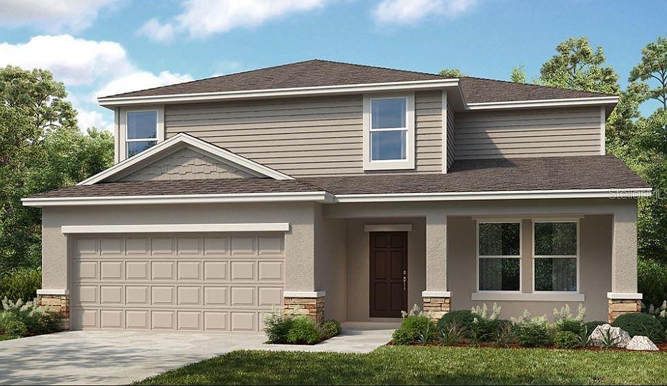 Under Construction. MLS#O6267412 REPRESENTATIVE PHOTOS ADDED. New Build ~ March Completion. Perfect for buyers who love to entertain, the Azalea at Riverfront boasts a spacious great room that seamlessly flows into an open-plan kitchen with a casual dining area. This area leads to a downstairs bedroom and adjacent bathroom, offering a great setup for overnight guests. On the second floor, the primary suite and three additional bedrooms are conveniently located near the laundry room and hallway linen closet. The primary suite includes a large, rectangular walk-in closet, dual sinks and vanities, an oversized shower, a private water closet, and a linen closet. Two of the three secondary bedrooms feature walk-in closets, and all three share a thoughtfully designed bathroom with dual sinks and vanities, separated from the toilet and shower by an interior door. Structural options added include: Covered lanai.