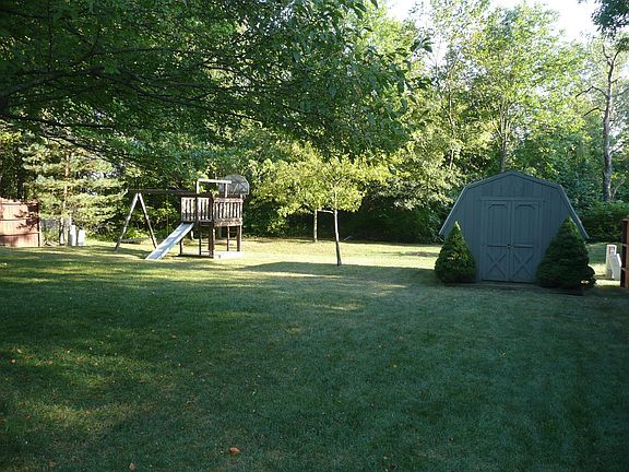 Private wooded lot that backs up to a wooded preserve. Large covered front porch. 14x16 wood deck and storage shed. Roof & siding replaced in 2008. Large kitchen with island is open to eating space which looks out onto deck & backyard. Newer fridge, dishwasher & microwave. Family room also looks out to private back yard and has a brick wood burning fireplace. Upstairs find 3 good size bedrooms, an additional full bath & the master suite. Master includes his & her closets and a private bath with shower and dual vanity. Large partial basement offers plenty of space for storage and possibility for additional living space.