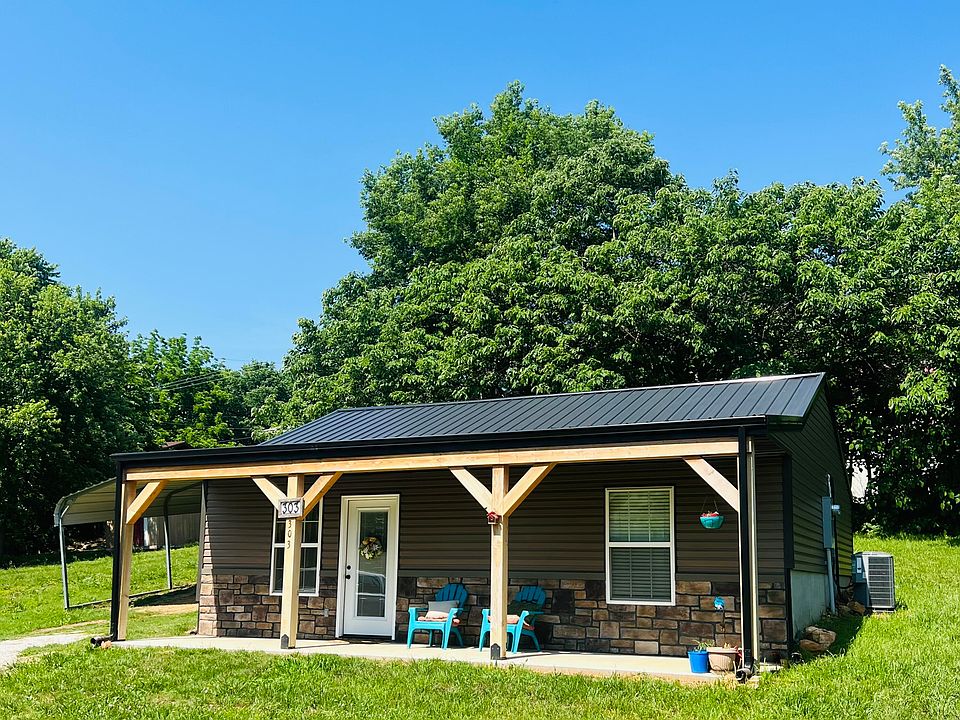 Stockton Lake Living! This 2 bedroom, 1 bath home was constructed in 2021 and offers 780 square feet of living space. Open living, dining and kitchen areas maximize this space perfectly. Nice covered front porch with cedar pillars and stone accents make this very easy on the eyes. 1 car carport, energy efficient and ready to be yours! This property has the potential to make an excellent home, lake retreat or vacation rental. Just minutes from Stockton Lake!