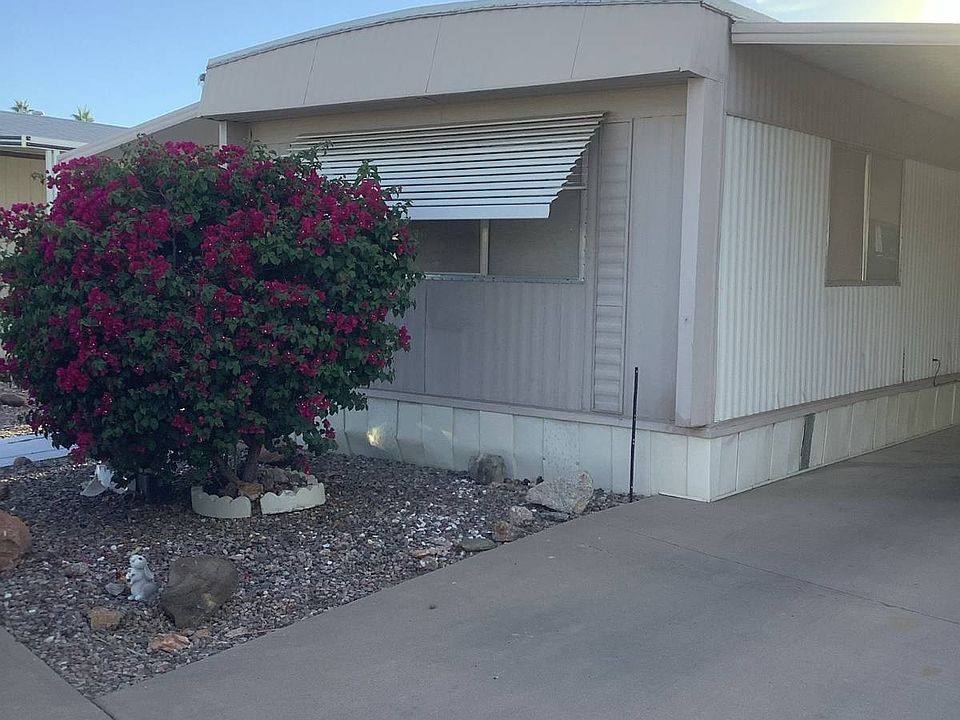 Don't miss this incredible opportunity in Fountaine East Mobile Home Estates - a friendly 55+ community located at 303 S Recker Rd, Mesa, AZ 85204! This 2-bedroom, 1-bath home is move-in ready and priced to sell fast. Enjoy central A/C plus a window unit in the second bedroom for extra comfort, and all appliances are included! The home also features a long covered carport and storage shed-perfect for Arizona living. The seller is highly motivated and ready to close quickly, so act now before it's gone! Come enjoy the convenience of Mesa living close to shopping, dining, and entertainment in a welcoming, well-kept community.