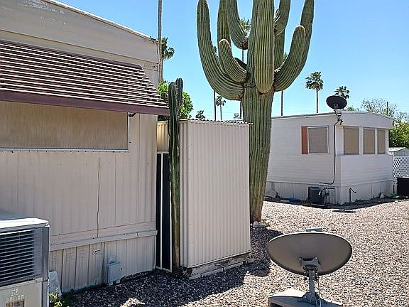 Well refurbished about 3/4 completed your finishing touches will make it yours health forces sale hard parts are completed .2 bedroom 1 3/4 bath, bedrooms are located on each end of unit, open floor plan, large central heat and air unit newer, plumbing updated and drains cleared, 3 sheds large enclosed 8x24 Arizona room, washer and dryer located in out building, located at highly sought after 55+ Park centrally located, close to Banner Hospital and bus line.
