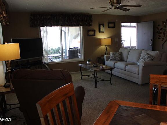 Welcome to a slice of paradise nestled in one of the most sought-after 55+ communities! This beautifully maintained mobile home offers comfort, style, and the lifestyle you've been dreaming of. Enjoy cool nights in a fully screened in porch area. Step inside this gem and discover an open and airy floor plan that maximizes every square foot. The home feels fresh and inviting. The kitchen is a delight for any home chef, boasting ample counter space, quality appliances, and plenty of storage to keep everything within easy reach. The cozy living area is perfect for relaxing or hosting a game night with friends.