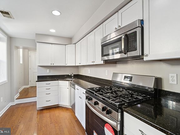 Discover this End of the Group, fully updated 3-bedroom, 2.5-bath brick rowhome in the highly desirable Fells Point Historic District, where modern comfort meets timeless Baltimore charm. Offering 1,512 sq ft of thoughtfully designed living space, this three-story residence is truly turn-key — perfect for an investor or buyer seeking a low-maintenance, high-appeal home. Step into an open-concept main level with hardwood floors, high ceilings, and a chef’s kitchen featuring stainless-steel appliances, granite countertops, and ample storage. The spacious living and dining areas flow effortlessly, making this an ideal layout for tenants or entertaining. A convenient half bath adds practicality. Upstairs, you’ll find two large bedrooms and a modern full bath, while the third-floor primary suite offers a private ensuite, exposed beams, and direct rooftop deck access with sweeping city and harbor views — a major rental or resale highlight. Additional features include updated mechanicals, energy-efficient windows, and a low-maintenance rear patio. The property’s location offers unbeatable convenience with a Walk Score of 98, Transit Score of 80, and close proximity to Patterson Park, Johns Hopkins Hospital, Broadway Market, and Fells Point waterfront. Whether you’re a homeowner looking for a move-in-ready city retreat or an investor seeking a proven income property with strong neighborhood comps in the $325K–$355K range, this listing delivers exceptional value and long-term upside. Some images have been virtually staged to illustrate the potential of the space.