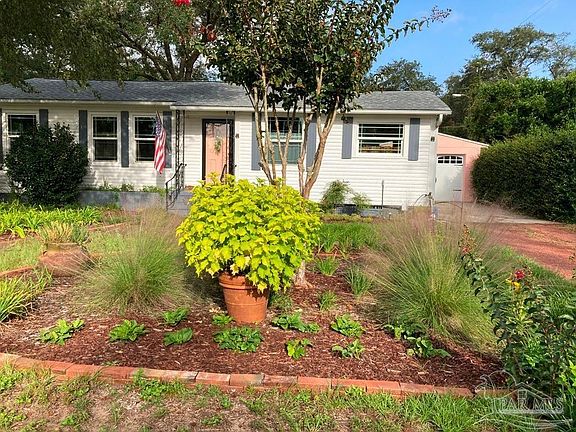 This charming cottage in sought after Navy Point is located less than a block from Bayou Grande w/water views from the maintenance free yard. It has been completely renovated from top to bottom & has so many special touches! You will be wowed by the gorgeous mint condition hardwood floors throughout in this open concept design. The living area features Artisan style custom wood framing around the doors, windows & baseboards & a lovely built in bookcase. There is a spacious sun room which has a built-in computer workstation w/shelves & plenty of natural light which could serve as an office , extra dining area or guest bedroom. The HVAC system was replaced in Nov 2023. Major improvements have been made to this home for wind mitigation which has provided the homeowner w/substantial credits on homeowners insurance. Also, the flood insurance policy is transferable. This home has hurricane rated windows & had wind mitigation provided by Rebuild NW Florida which includes reinforced gable ends, hurricane clips & extra bracing in the attic which also has R-30 insulation. The updated kitchen includes quartz countertops & custom tile backsplash. The kitchen also features custom built in shelving for the microwave & toaster oven w/lots of extra storage. The remodeled bathroom has tile surround in the shower, a vessel sink atop a custom-built vanity, & a large linen closet. This home had a complete home rewire and the complete house is plumbed with Pex. Head outside to see the Most Beautiful Outdoor Living Space with Custom Deck and Pergola. You also have a Shed on the Back of your Garage. This could be converted to an additional Living Space. Also, there is Spray Foam in the Crawl Space and New Water Heater and Newer Roof and Sentricon Termite System is already in place. Be Sure to CLICK ON THE MEDIA LINK FOR DRONE VIDEO OF NEIGHBORHOOD!