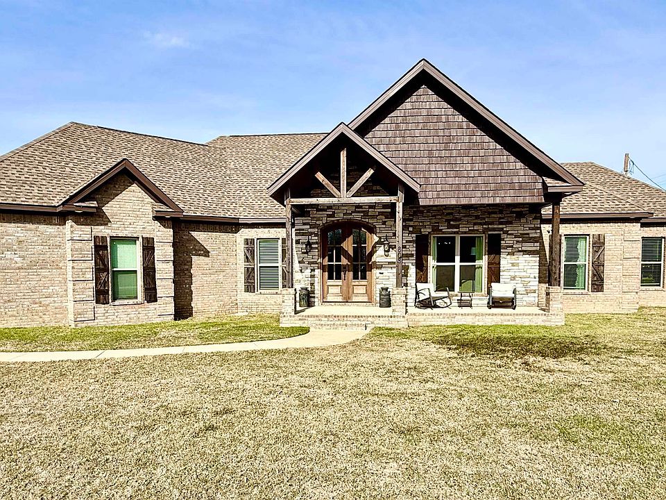 This stunning 4 bed, 2.5 bath home in Manila, AR blends modern comfort with farmhouse charm, featuring an open floor plan, a cozy brick fireplace, granite countertops, stainless appliances, and a spacious kithcen island. The primary suite includes a double vanity, soaking tub, and tiled walk-in shower, while the covered front porch and large yard make it perfect for relaxing or entertaining.