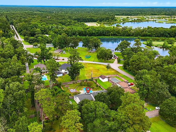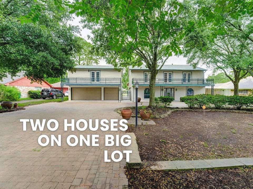 TWO HOUSES on One Lot! MAIN CUSTOM HOME is 2680 SF. SECOND HOUSE is approximately 1324 SF. Main House: 1 bedroom & 1.5 bathrooms, with an office on the second floor. Extended balcony overlooking the street. Panoramic, lake view from other side of the house. Second house: 2 bedrooms & 3 full bathrooms with an extended balcony, living room and kitchen. Perfect for multigenerational living, private guest accommodations, or rental income opportunities. This property is located on a peaceful cul-de-sac in Conroe. 3-car garage, a circular driveway, and a spacious lot—perfect for those seeking both privacy and lifestyle. Open-concept layout with living, dining, and family rooms. Custom kitchen with bar, ideal for entertaining. Covered patio for outdoor living. Sparkling pool for year-round enjoyment. Large lot with multiple entertainment spaces. It is a private retreat. Whether hosting by the pool, enjoying mornings on the terrace, or offering guest accommodation, it delivers it all.