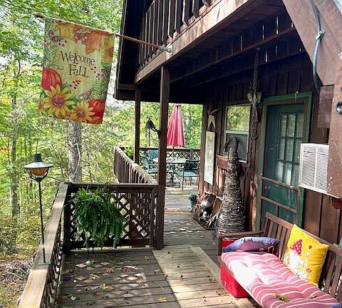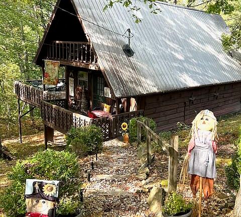 Excellent condition A Frame cabin in a great neighborhood of Shady Lane in Wellington, Ky, only 3 miles from Longbow Marina and the Daniel Boone National Forest. This cabin is "agent owned" and is being sold furnished with some personal items being removed. This cabin has 2 bedrooms upstairs, and 1 bath downstairs with a living room and kitchen downstairs. Laundry area just off the bathroom and kitchen. There is a wrap around porch on 3 sides, 2 upstairs decks, one on each end, and there is a detached 1 car carport to park your vehicle. Cabin is heated with electricity or the gas corner fireplace heats it warm as toast. Window AC unit downstairs and free standing AC unit upstairs. Cabin is being sold in its AS IS condition, but inspections are welcome. Buyers must be pre-approved to view the property.