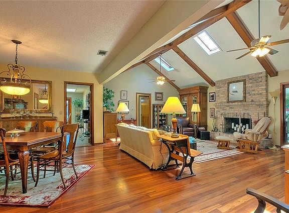 Beautiful 4 bedroom 2 bath home in demand school district features Tiger wood flooring in the living room, stainless steel appliances, a large sunroom with French doors leading into the master bedroom, a cozy fireplace and skylights allowing natural light inside. Master bath has a spacious walk in closet and relaxing hydro tub. Minutes from shopping and athletic club. Pets subject to owner approval. OWNER/AGENT
