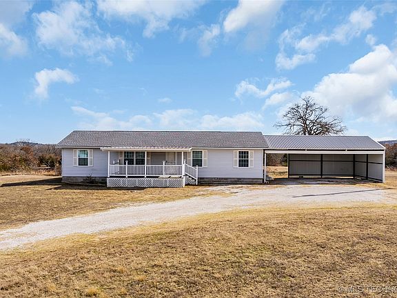 A patio door off the kitchen leads directly to the covered back porch, making outdoor dining and relaxing a breeze. The primary suite boasts a beautiful tiled walk-in shower, double vanities, and a walk-in closet. The washer and dryer will remain, making this home completely move-in ready. Outdoor living is just as inviting, with covered front and back porches, perfect for relaxing and enjoying the peaceful surroundings. A 3-car attached carport offers plenty of parking and convenience. A brand-new roof was installed in June 2024, providing peace of mind for years to come! Set in a quiet and peaceful location, this home is a rare find—offering like-new condition, modern comfort and country charm. Don't Miss This One!