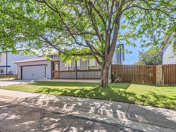 Welcome home! You will love this adorable tri-level with over 1,800 finished SF! Enter into vaulted ceilings in the ample sized living room with newer carpet. The nice sized dining area is open to the living room and updated kitchen, which has beautiful custom beetle kill pine cabinets and stainless appliances. Upstairs you'll find two nice sized secondary bedrooms that share a full bath, and a primary suite with its own private full bath and WI closet. On the lower level you'll enjoy movie or game nights in the large garden level family/rec room. This space could easily become a 4th bedroom as well. The lower level also houses the laundry and utility room with RI plumbing for a future bathroom and plenty of storage space. The oversized garage has a gas heater, workbench and built-in cabinets, rafter storage and an access door to the backyard. Enjoy the summer evenings in the nice sized backyard with a patio and storage shed. Lots of new including: Roof, gutters and siding & exterior paint (2022), All windows on the back side of house (2022), Furnace and A/C (2018), Carpet throughout (2023), Tankless water heater (2021), Artificial turf in front yard. All of this with NO HOA or Metro District! Nice community park at the end of the street. Close to I-25, shopping, schools and more! Don't miss this gem!