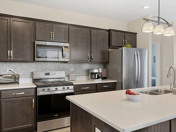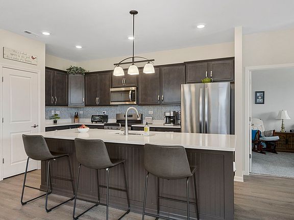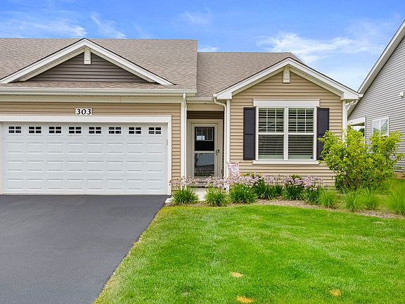 Welcome to 303 Sussex Lane, a beautifully maintained 3-bedroom, 2-bathroom residence located in the sought-after community of North Aurora, IL. The open-concept layout includes a large living room that's ideal for relaxing or entertaining. The adjacent dining area provides a convenient space for family meals and gatherings. The large and open modern kitchen features Stainless Steel appliances, plenty of counter space, and ample cabinetry for storage. A seating center island offers a convenient breakfast nook that offers a casual spot for meals. Comfortable Bedrooms: The master bedroom includes a walk-in closet and an en-suite bathroom. The two additional bedrooms provide space for family and guests.One of the bedrooms easily transforms into a home office or den with french door access. Premium add ons: Door package, faucets, custom interior shutters and door shade, lighting, fans, finished insulated garage with custom shelving and workspace. Backyard Retreat: Enjoy the private backyard views with a covered patio and a well-maintained lawn. It's an excellent area for outdoor activities, or simply unwinding after a long day. A two-car garage provides ample parking and custom storage, while the laundry room adds additional storage space. Convenient Location: Located in a welcoming neighborhood, 303 Sussex Lane is close to local parks, schools, and shopping centers, offering both comfort and convenience. Close to walking trails to the fox river and forest preserve for nature retreats. Excellent Clubhouse with a members only gym, huge pool for laps or fun, clubhouse meeting space and even a Pickleball and Bocce Ball court. This inviting home provides a great opportunity for comfortable living in a friendly community.
