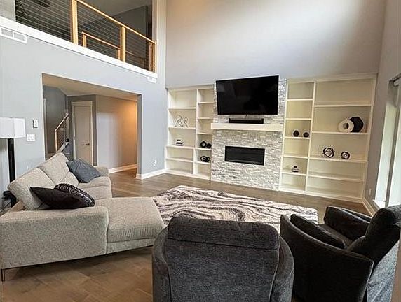 Gorgeous, modern, contemporary style (better than new construction) home with open plan & thoughtful design in every detail making this home extremely functional. Significant upgrades: New motorized top-to-bottom blinds on the main level. Professionally installed low maintenance landscaping in front and back include large trees, shrubs, flowers, river rock, and rubber mulch that you will never have to spend time or money replacing annually. It will last you a lifetime. New fencing installed to provide space to enjoy without concern. Large primary main level suite, walk-in closet with daylight, bath/spa tub, massive walk-in shower, and premium heated floors for extra comfort. Office/2nd BR on main level. Roomy 2nd story with 3 bedrooms with walk-in closets. 2 full baths upstairs and plenty of spaces to spread out with work, study, play or entertaining. Gourmet kitchen highlights island and high end appliances, lots of cabinetry & work space, extra large walk in pantry and laundry area off the garage. Bar w/ beverage fridge to entertain and enjoy company. Many opportunities right outside your back yard include The Links golf course, a pond for endless fishing year round, pickleball and basketball courts, and Rock Chalk Park. Lots of wildlife roam the area and make for a great firepit evening on your private patio, wired for an outdoor TV. Come explore what northwest Lawrence has to offer with easy access to I-70, K-10, Topeka and Kansas City.