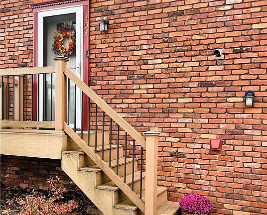 Welcome Home to 303 Timberglen! Located just minutes from Robinson Town Center and the Pittsburgh International Airport. This Move in ready town home in West Allegheny School District features 2 large bedrooms, 1.5 baths, a finished lower level, AND newer walk out back deck! A unique open concept with a living room-dining room combo. The Dining room cathedral ceilings can be admired from the main bedroom's viewing window located between TWO large closets. The kitchen is spacious and offers room for an eat-in area or you can add extra storage.