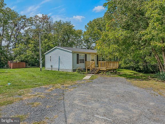 Manufactured home on a permanent foundation. Will qualify for VA and FHA financing at 0% down and 3.5% down respectively. Priced at recent appraisal. Single level living at its finest! This 3 bedroom 2 bath rancher sits on just under an acre and flooring has been updated throughout. When you pull up to the property you will notice the large gravel driveway for tons of off street parking. A concrete walkway leads you to the large porch, ready for rocking chairs. Inside you have a spacious living room with large windows, easy-care laminate floors, and a ceiling fan. A case opening leads you into the eat-in kitchen. You have ample countertop and cabinet space. There is room for a table by the large window for lots of natural light. Beyond the kitchen is your laundry room with hook-ups and shelving. As this room has a door to the rear yard it would be a perfect mudroom. Down the hall you have two generously sized bedrooms with bright windows, carpet, and ample closet space. The hall bath features an extended single bowl vanity for storage and a tub/shower combo. The primary suite features large windows for lots of a natural light and comfortable carpet. You have a large closet and a private ensuite with an extended single bowl vanity and tub/shower combo. Outside in the rear of the home you have a nice deck to host BBQs or lounge and take in the view. Stairs step down to the rest of your nearly 1/2 acre lot. The property backs to trees for lots of privacy. There's plenty of space to enjoy the outdoors. This home has everything you want at a price you can afford! Schedule your showing today!